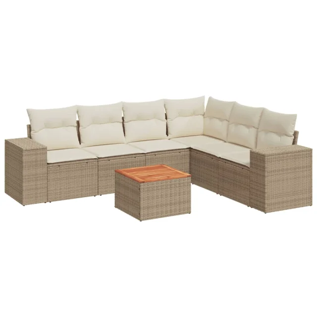 vidaXL Vrtna sedežna garnitura 7-delna z blazinami bež poli ratan