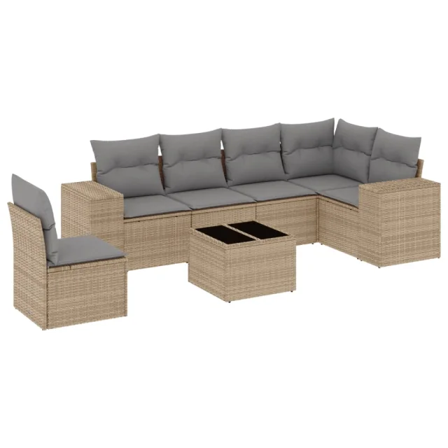 vidaXL Vrtna sedežna garnitura 7-delna z blazinami bež poli ratan