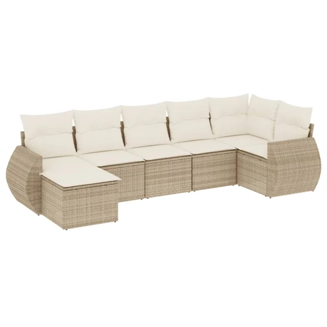 vidaXL Vrtna sedežna garnitura 7-delna z blazinami bež poli ratan