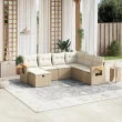 vidaXL Vrtna sedežna garnitura 7-delna z blazinami bež poli ratan
