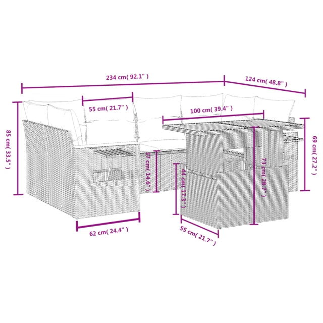 vidaXL Vrtna sedežna garnitura 7-delna z blazinami bež poli ratan