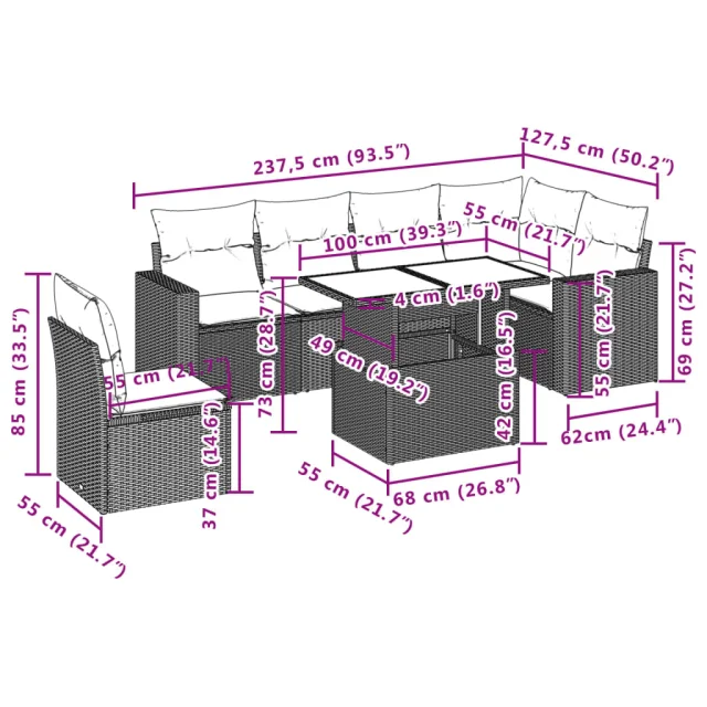 Ta vrtna sedežna garnitura je popoln dodatek za vaše dvorišče, teraso ali verando, saj zagotavlja udoben in vabljiv prostor za klepet z družino in prijatelji ali preprosto za sprostitev in uživanje na prostem.