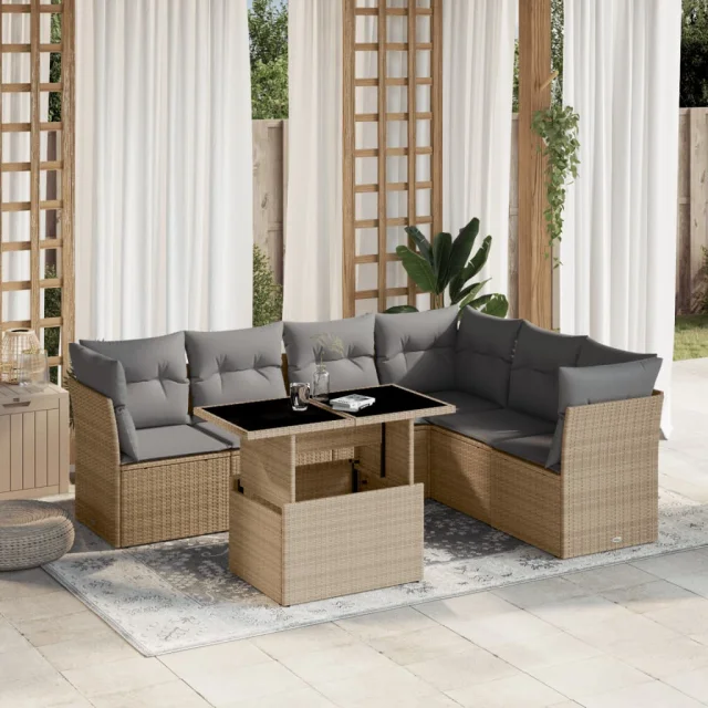 vidaXL Vrtna sedežna garnitura 7-delna z blazinami bež poli ratan