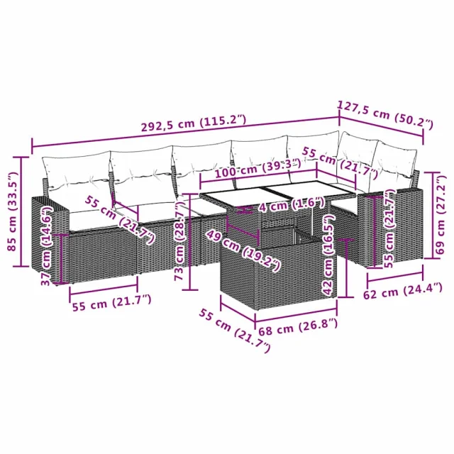 Ta vrtna sedežna garnitura je popoln dodatek za vaše dvorišče, teraso ali verando, saj zagotavlja udoben in vabljiv prostor za klepet z družino in prijatelji ali preprosto za sprostitev in uživanje na prostem.
