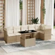 vidaXL Vrtna sedežna garnitura 7-delna z blazinami bež poli ratan