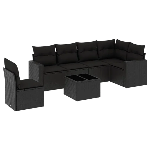 vidaXL Vrtna sedežna garnitura 7-delna z blazinami črn poli ratan
