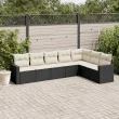 vidaXL Vrtna sedežna garnitura 7-delna z blazinami črn poli ratan