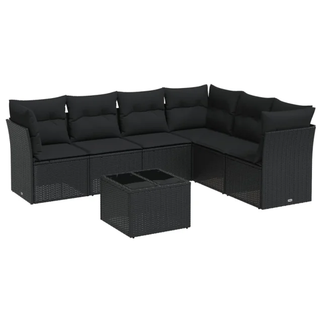 vidaXL Vrtna sedežna garnitura 7-delna z blazinami črn poli ratan