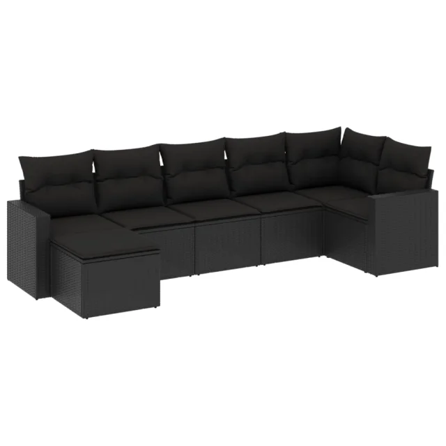 vidaXL Vrtna sedežna garnitura 7-delna z blazinami črn poli ratan