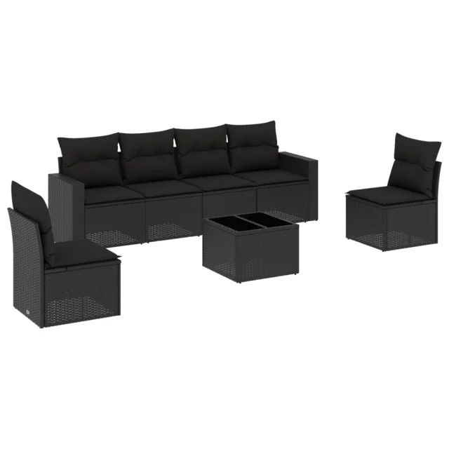 vidaXL Vrtna sedežna garnitura 7-delna z blazinami črn poli ratan
