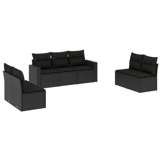 vidaXL Vrtna sedežna garnitura 7-delna z blazinami črn poli ratan
