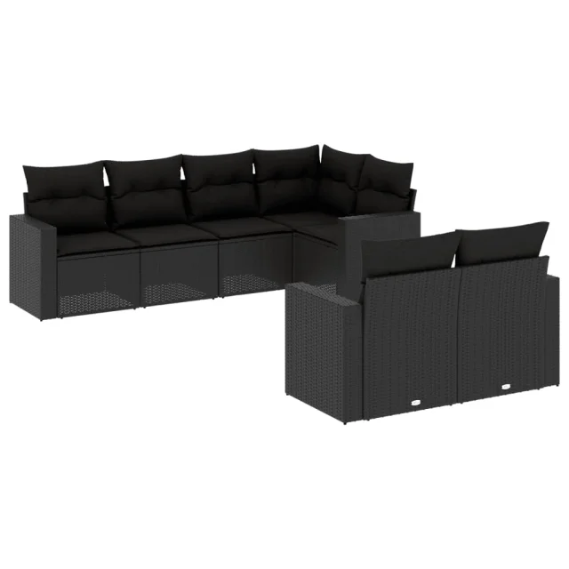 vidaXL Vrtna sedežna garnitura 7-delna z blazinami črn poli ratan