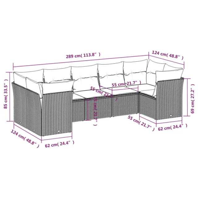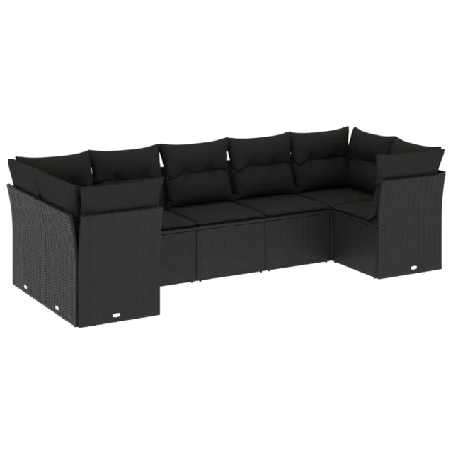 vidaXL Vrtna sedežna garnitura 7-delna z blazinami črn poli ratan