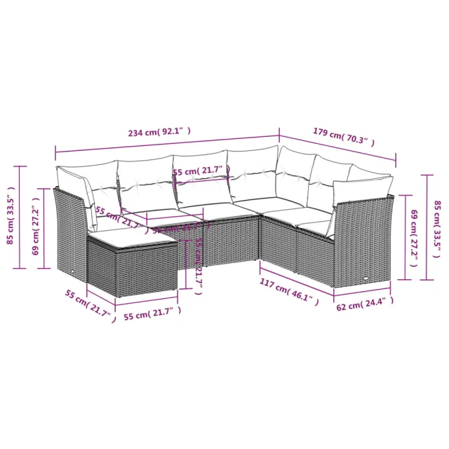 vidaXL Vrtna sedežna garnitura 7-delna z blazinami črn poli ratan