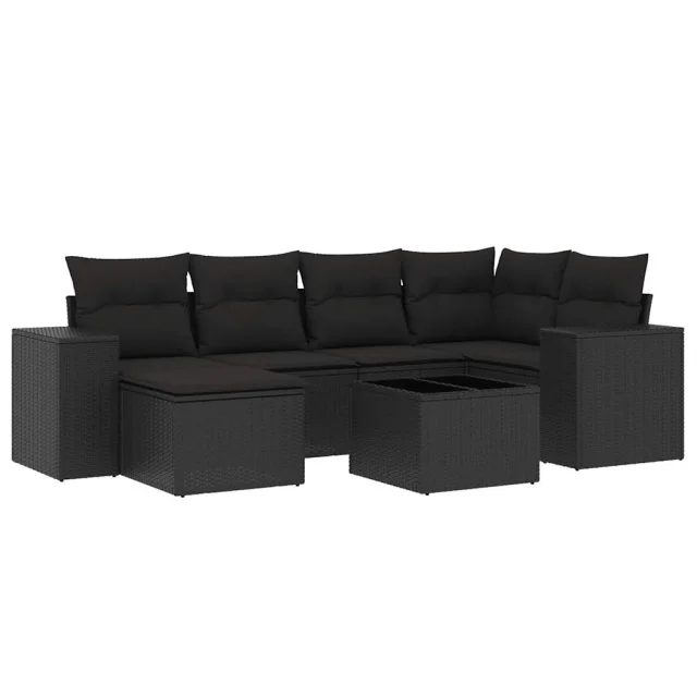 vidaXL Vrtna sedežna garnitura 7-delna z blazinami črn poli ratan