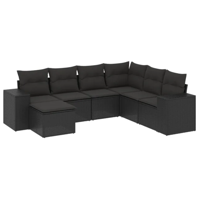 vidaXL Vrtna sedežna garnitura 7-delna z blazinami črn poli ratan