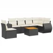 vidaXL Vrtna sedežna garnitura 7-delna z blazinami črn poli ratan