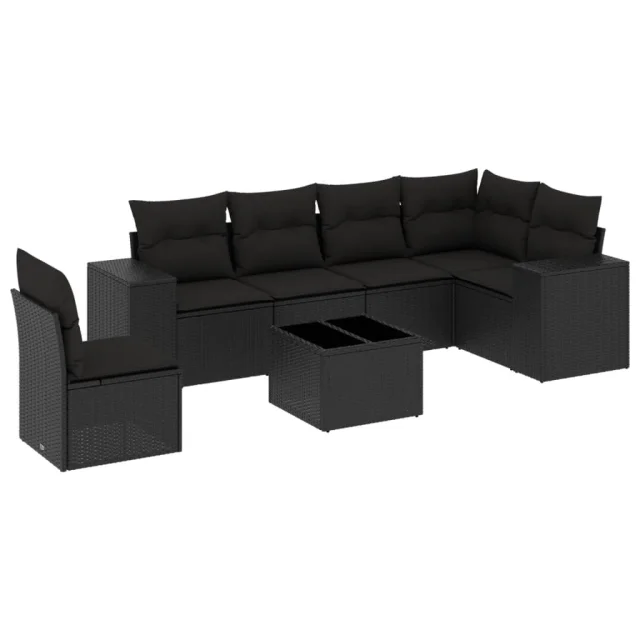 vidaXL Vrtna sedežna garnitura 7-delna z blazinami črn poli ratan