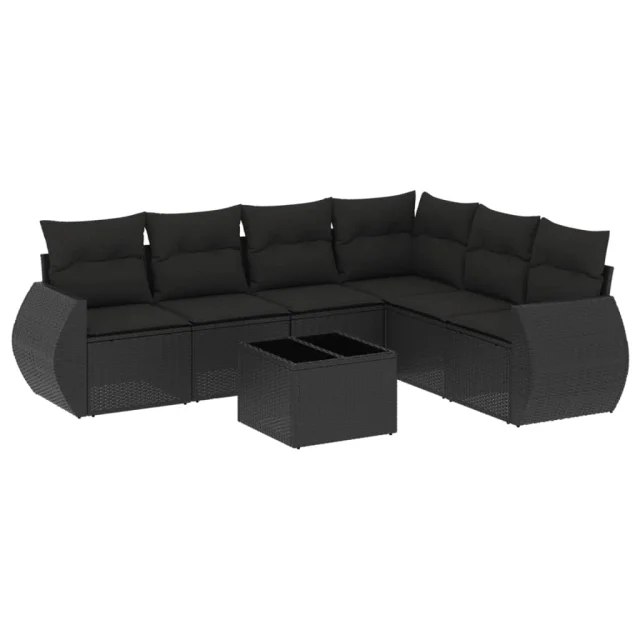 vidaXL Vrtna sedežna garnitura 7-delna z blazinami črn poli ratan