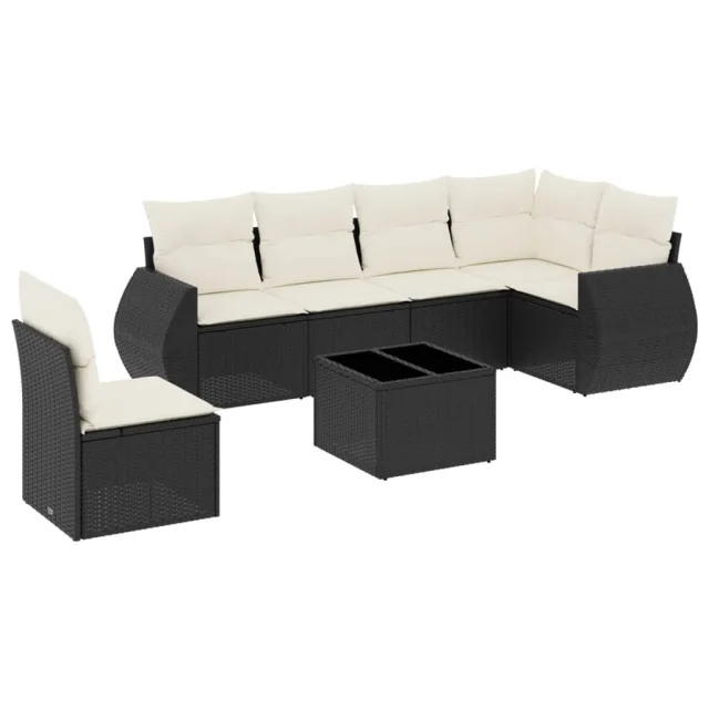 vidaXL Vrtna sedežna garnitura 7-delna z blazinami črn poli ratan