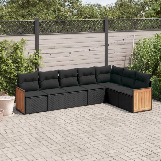 vidaXL Vrtna sedežna garnitura 7-delna z blazinami črn poli ratan