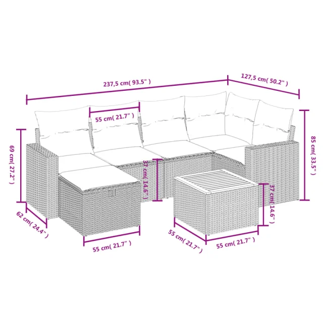 Ta vrtna sedežna garnitura je popoln dodatek za vaše dvorišče, teraso ali verando, saj zagotavlja udoben in vabljiv prostor za klepet z družino in prijatelji ali preprosto za sprostitev in uživanje na prostem.