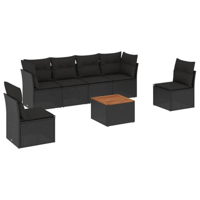 vidaXL Vrtna sedežna garnitura 7-delna z blazinami črn poli ratan