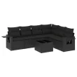 vidaXL Vrtna sedežna garnitura 7-delna z blazinami črn poli ratan