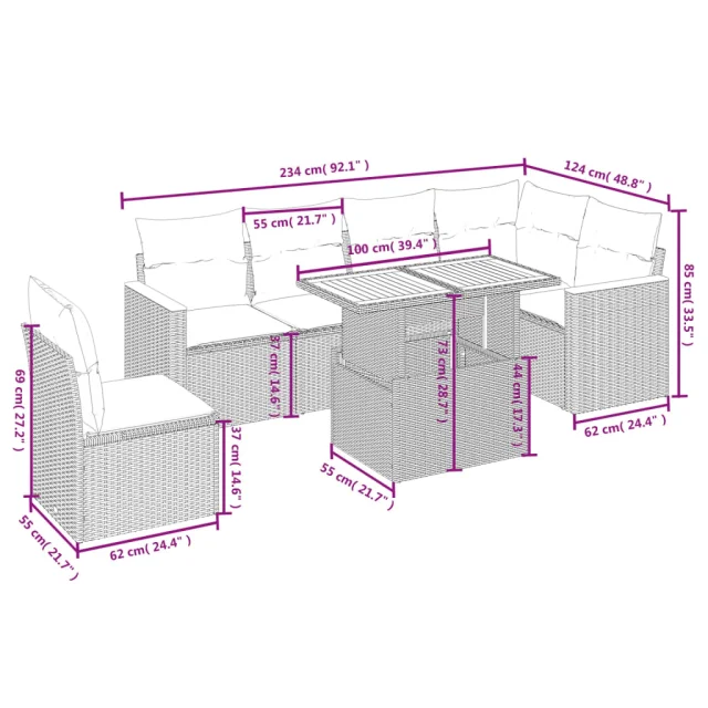 vidaXL Vrtna sedežna garnitura 7-delna z blazinami črn poli ratan