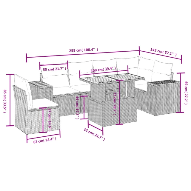 vidaXL Vrtna sedežna garnitura 7-delna z blazinami črn poli ratan