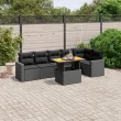 vidaXL Vrtna sedežna garnitura 7-delna z blazinami črn poli ratan