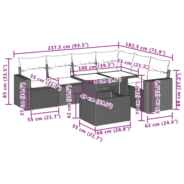 Ta vrtna sedežna garnitura je popoln dodatek za vaše dvorišče, teraso ali verando, saj zagotavlja udoben in vabljiv prostor za klepet z družino in prijatelji ali preprosto za sprostitev in uživanje na prostem.