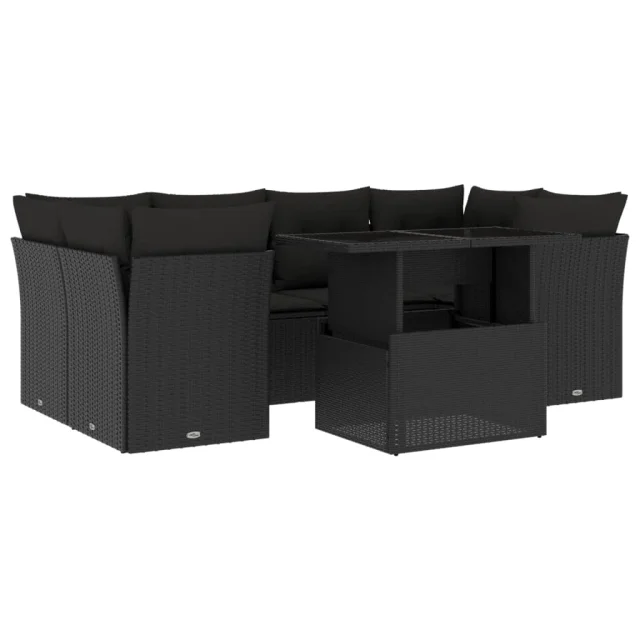 vidaXL Vrtna sedežna garnitura 7-delna z blazinami črn poli ratan