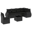 vidaXL Vrtna sedežna garnitura 7-delna z blazinami črn poli ratan