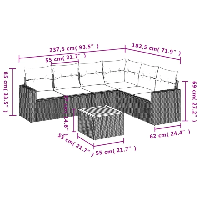 vidaXL Vrtna sedežna garnitura 7-delna z blazinami črn poli ratan