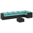 vidaXL Vrtna sedežna garnitura 7-delna z blazinami črna poli ratan