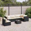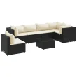 vidaXL Vrtna sedežna garnitura 7-delna z blazinami črna poli ratan