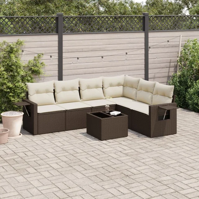 vidaXL Vrtna sedežna garnitura 7-delna z blazinami rjav poli ratan