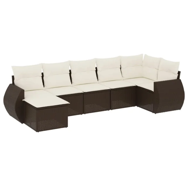 vidaXL Vrtna sedežna garnitura 7-delna z blazinami rjav poli ratan