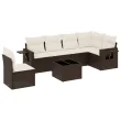 vidaXL Vrtna sedežna garnitura 7-delna z blazinami rjav poli ratan