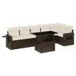 vidaXL Vrtna sedežna garnitura 7-delna z blazinami rjav poli ratan