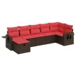 vidaXL Vrtna sedežna garnitura 7-delna z blazinami rjav poli ratan