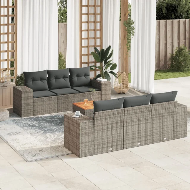 vidaXL Vrtna sedežna garnitura 7-delna z blazinami siv poli ratan