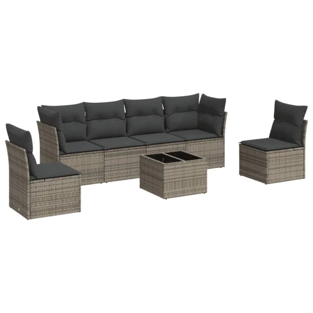 vidaXL Vrtna sedežna garnitura 7-delna z blazinami siv poli ratan