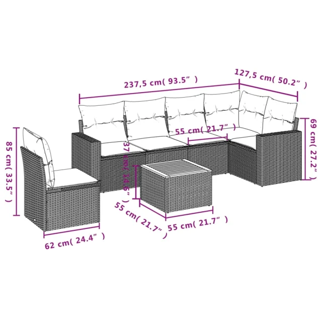 vidaXL Vrtna sedežna garnitura 7-delna z blazinami siv poli ratan