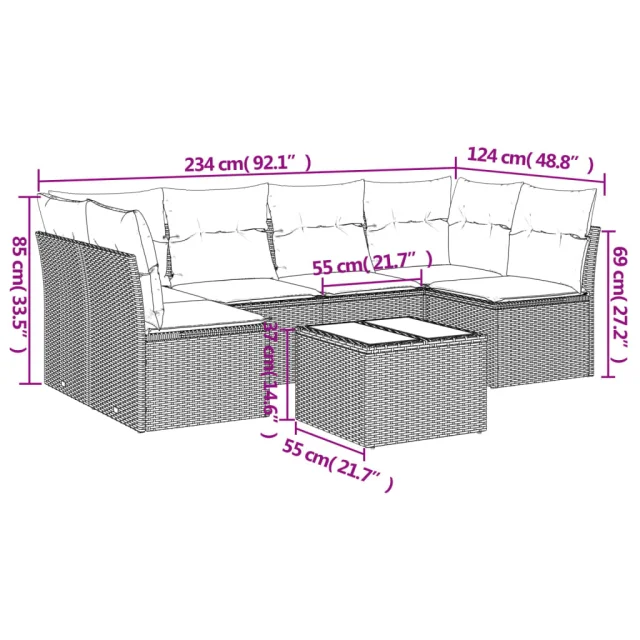vidaXL Vrtna sedežna garnitura 7-delna z blazinami siv poli ratan