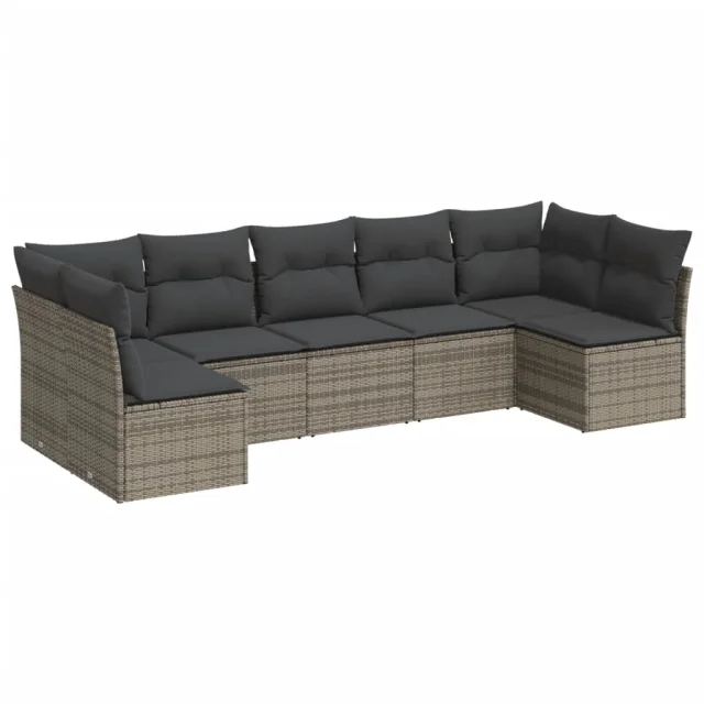 vidaXL Vrtna sedežna garnitura 7-delna z blazinami siv poli ratan