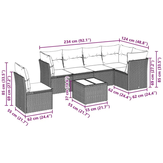 vidaXL Vrtna sedežna garnitura 7-delna z blazinami siv poli ratan