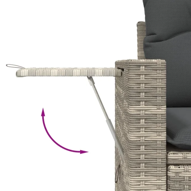 • Priročna stranska mizica: To zunanje pohištvo ima zložljive stranske mizice s pnevmatsko vzmetjo na naslonjalih za roke, ki zagotavljajo priročen prostor za shranjevanje potrebščin na dosegu roke.