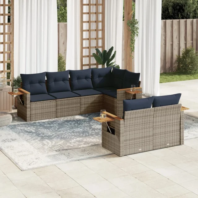 vidaXL Vrtna sedežna garnitura 7-delna z blazinami siv poli ratan
